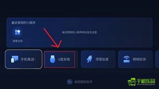 4、进入后,你会在界面中看到插入电视的U盘信息,找到需要安装的APK安装包进行安装就可以了。(由于本站仅做演示,未插入U盘,因此显示“未检测到U盘”)