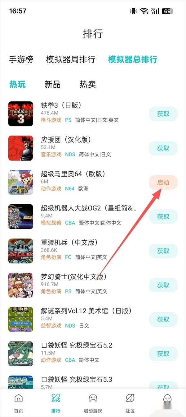 2、找到游戏之后,点击获取,获取后点击启动