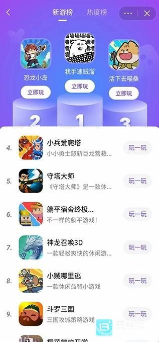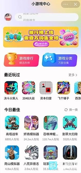 1、首先,该平台不仅提供了众多热门小游戏,而且玩家退出小游戏后,只要打开该软件,在“最近玩过”列表中仍能继续游玩之前的游戏。