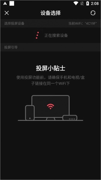 等待手机搜索出同一WiFi下的设备后,选择该设备并点击连接,即可成功投屏。