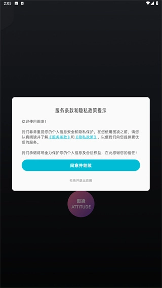 2、在阅读完服务条款和隐私政策的提示后,点击“同意并继续”按钮,即可开始后续操作。