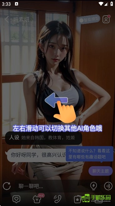 5、接着挑选一个自己感兴趣的角色形象进入聊天对话界面,就像图里展示的那样。另外,“左右滑动还能切换其他AI角色呢”。