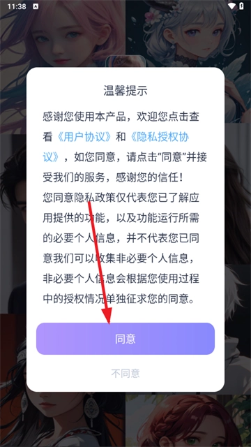2、首先请同意用户协议和隐私政策;