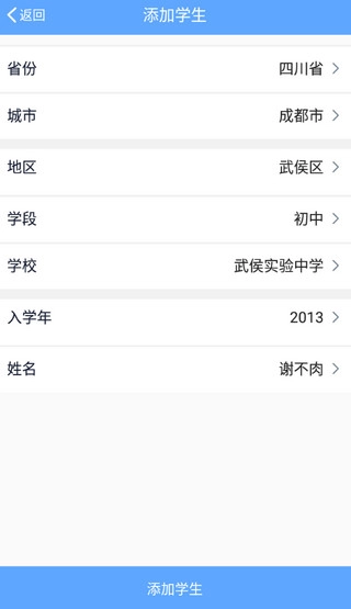4、完成设定后,仔细检查信息是否准确无误,确认无误后点击“添加学生”按钮即可。