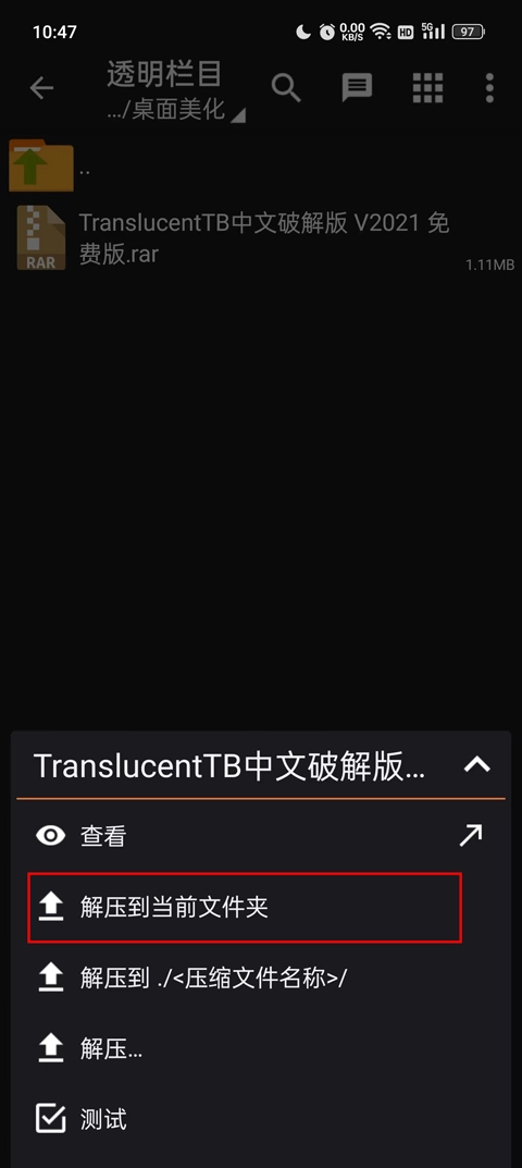 3、打开之后我们会来到ZArchiverpro软件中,直接长按进行解压,选择解压到当前文件夹;