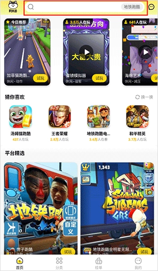 1、首先打开,你可以通过搜索来寻找游戏;