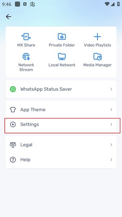1、首先在本站安装好后打开mxplayer pro专业版,如图示所示点击右上角设置图标