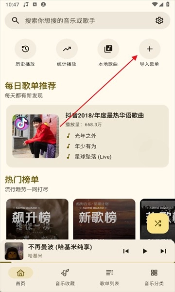 1、进入软件主页面,点击导入歌单