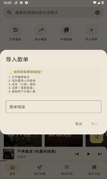2、把复制好的酷我音乐歌单链接粘贴到此处,点击导入按钮就可以了
