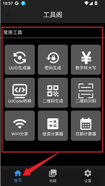 首页页面整合了二维码识别等多种工具资源。