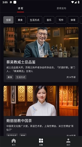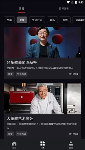 4、在挑选自己感兴趣的课程时,你能够查看各位大师的个人简介,以及他们针对该课程相关内容的讲解。