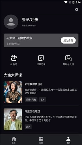 1、登录大渔大师课平台,这里汇聚了各行业的顶尖大师作为授课导师,还会为你推送每周精心筛选的优质课程;