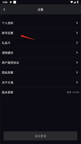 2、点击“账号设置”选项。