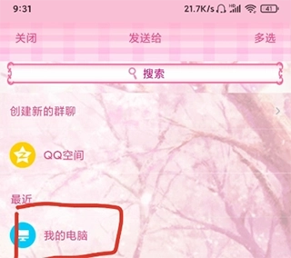 3、选择分享到我的电脑;
