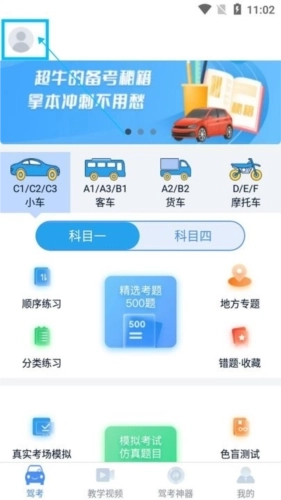 ·点击【驾考】页面左上角的头像;