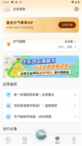 会员付费权益限时开放:4月30日至5月20日期间,应季实用功能可免费体验,助力您五一出行,畅享贴心天气服务。