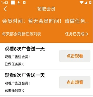 通过观看广告等任务来免费领取会员。