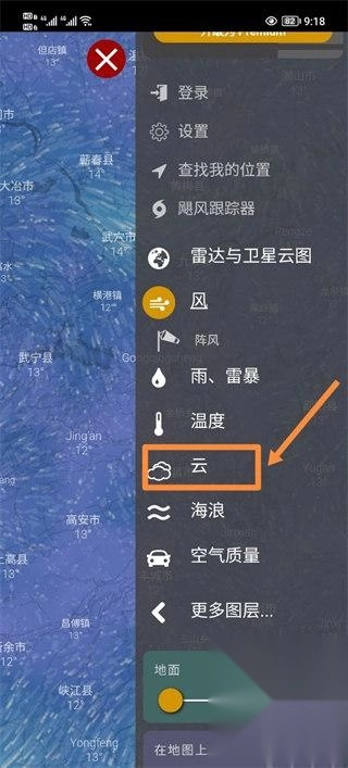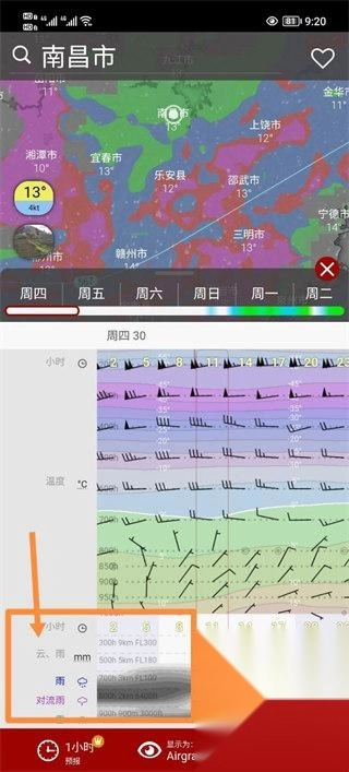 然后点击自己想要查看的地点,就能在下方看到云层的相关信息了。