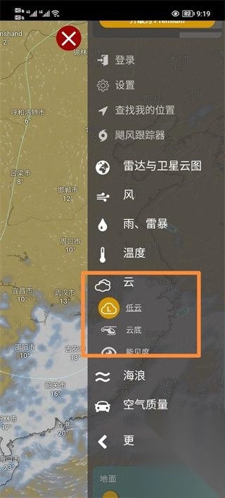 在云选项中可以根据需求来选择低云或者是云底功能;