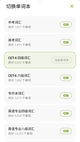 涵盖基础词汇、考研词汇、托福雅思词汇以及大学英语四、六级词汇等多样化学习模式,可满足不同用户的学习需求。