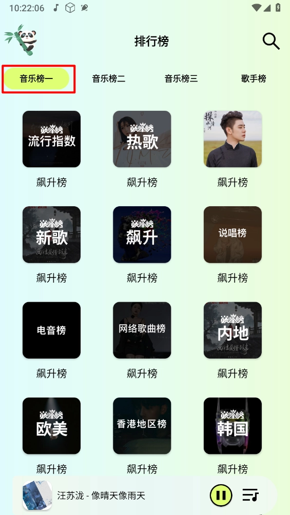 熊猫音乐,支持全网音乐资源,在这里可以免费畅听全网热门歌曲,无论是新歌还是老歌都能一网打尽,还能观看高清MV。无需开通会员就能免费畅享全网音乐,平台提供飙升榜、热歌榜、新歌榜等多个榜单,想听就听,一键即可享受最新、最热门的音乐。