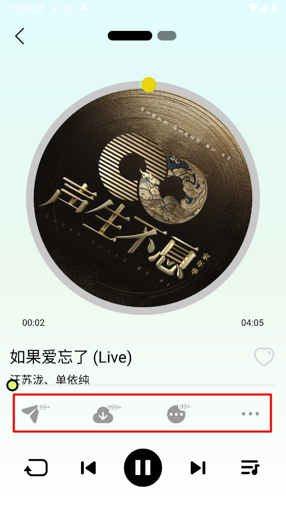 在播放详情页支持收藏、分享、等喜欢的歌曲。