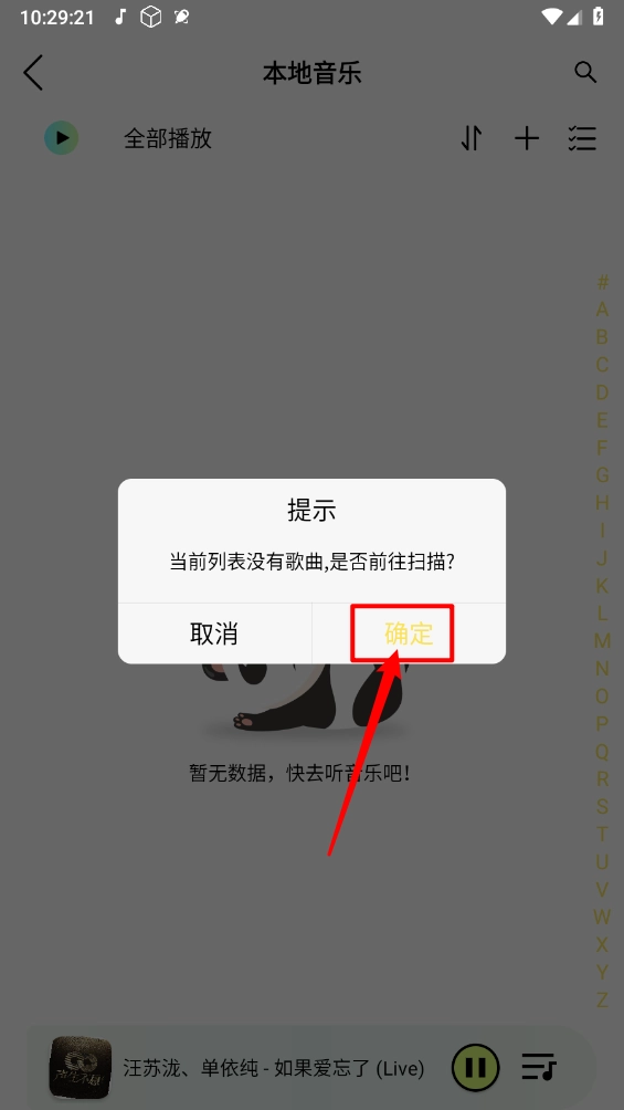 弹出提示框,无本地歌单,需要前往进行扫描。