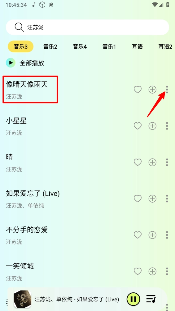 一键查找心仪的资源,选中想要的音乐后点击右侧的三个点图标。