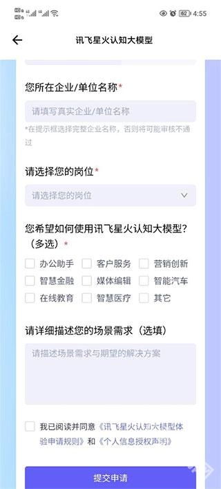 2、登录之后,会自动跳转到申请界面,大家根据自己的实际情况填写具体用途,个人申请是免费使用的,无需担心会有额外收费。