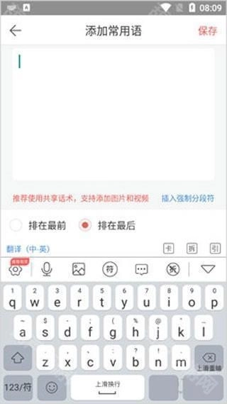 2、进入分类页面后,你即可添加个人常用语;这些常用语支持直接导出,也能直接从共享话术中导入。