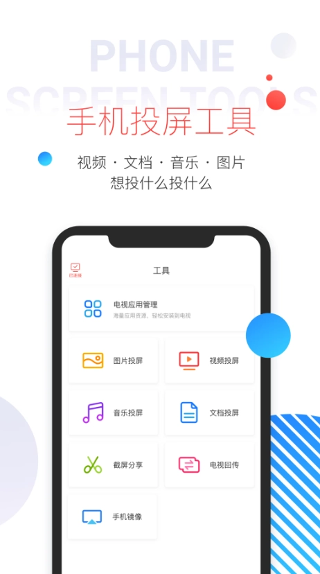 4、本地文件投屏:音乐/图片/视频/文档,大屏分享