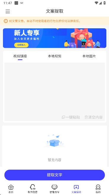 5、在文案提取页面中还支持我们对各种文案的提取操作。