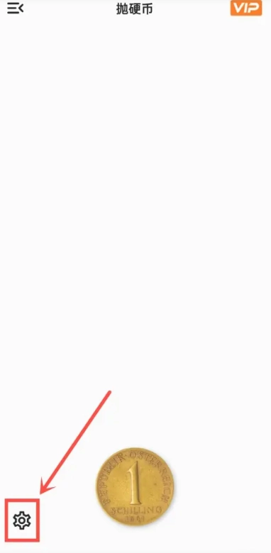 2、进入抛硬币页面,点击左下角【设置】。