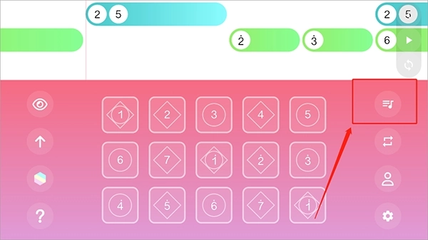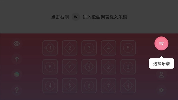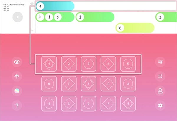 3、点击歌曲标题稍等片刻乐谱将加载到练习界面,乐谱分为三行,第一行对应键盘的第一行按钮。