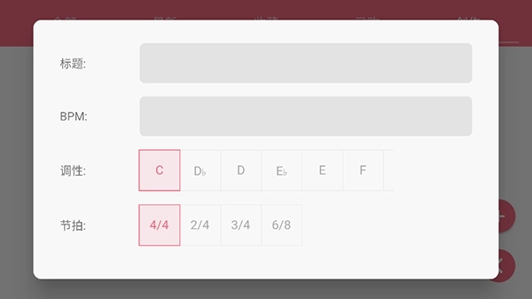 3、轻点+号,输入您歌曲的基本信息,点击确认即可进入创作界面。