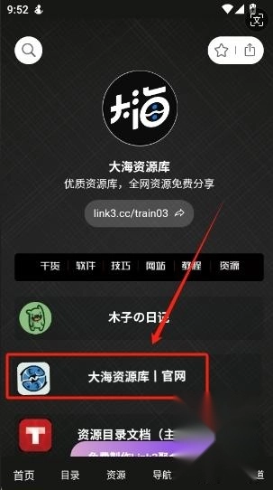 2、在首页点击“大海资源库”就能进入资源库主页