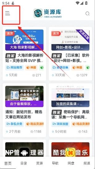 4、点击左上角的“三横线”可以打开侧边栏