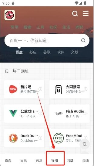6、点击下方的“导航”可以搜索全网各大搜索引擎上的内容
