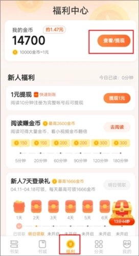 通过丰富的福利任务赚取金币,金币可以快速提现!新人福利、每日签到、阅读小说可以快速获取大量金币!看小说赚零花,金币福利等你来拿!