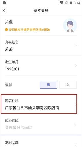 2.修改居住地即可