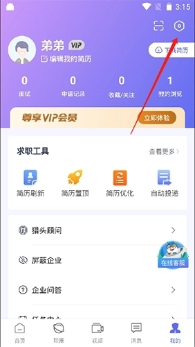 1.点击简历按钮
