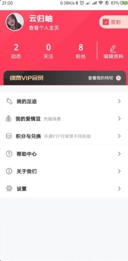 6、点击个人按钮,就能够浏览到自己的粉丝数量
