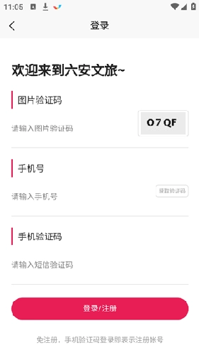 2、输入图片验证码、手机号、手机验证码即可注册登录。