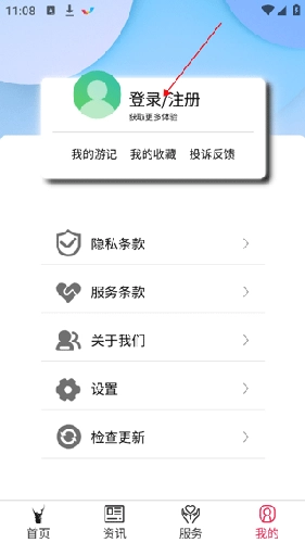 1、进入六安文旅找到下方“我的”,点击页面中的“注册/登录”。