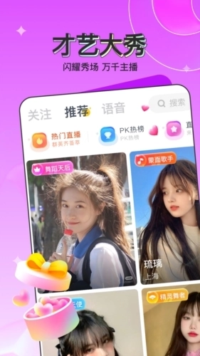 【自由空间】连麦、PK、唱歌、跳舞,各类才艺展现,让你放开了玩过瘾;