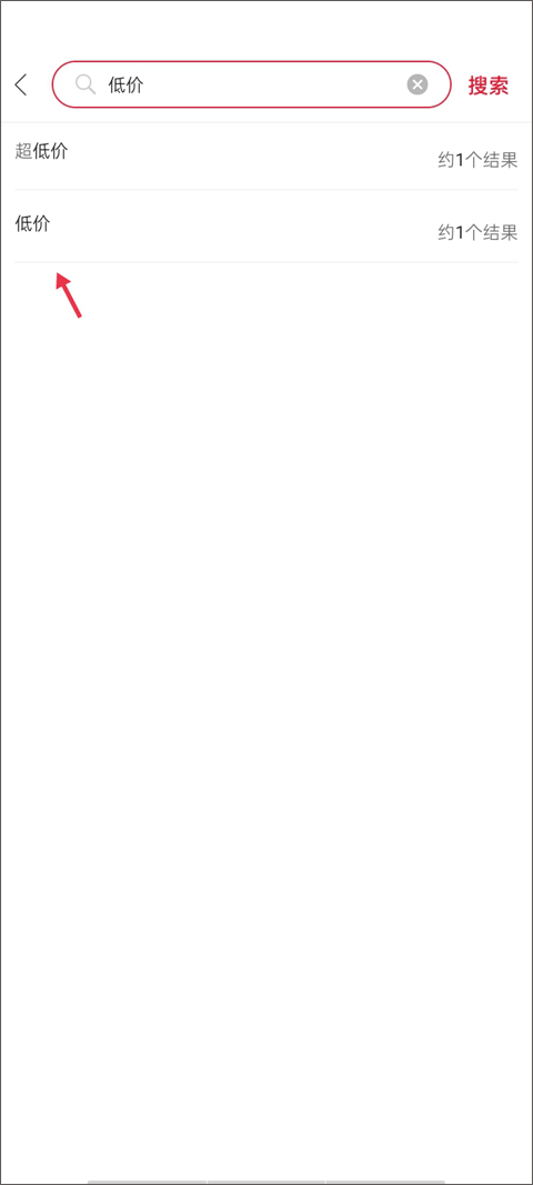 在搜索框里输入“低价”这个关键词后,页面会弹出两个下拉选项,从中点击任意一个即可。