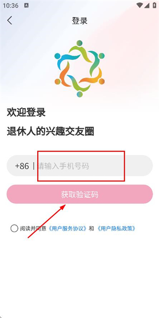 3、在手机端登录页面输入手机号,勾选相关协议后,点击“获取验证码”按钮。