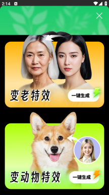 2、主要有“变老特效”和“变动物特效”这两种。选好特效后,点击“一键生成”按钮即可。