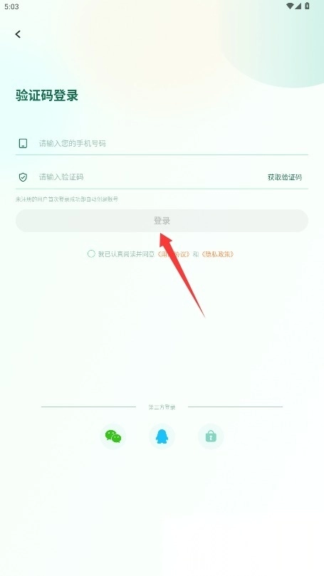 2、通过手机号获取验证码来完成快速登录,勾选同意相关协议后点击登录按钮,就能启用所有功能;