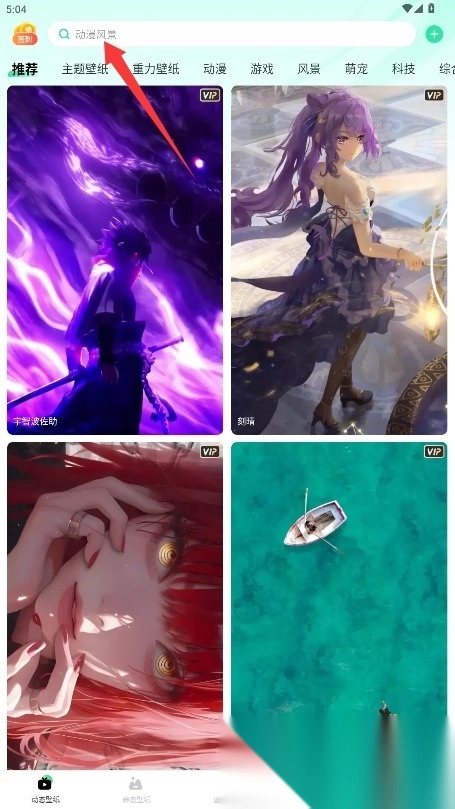 3、进入动态壁纸浏览页面后,既能查看系统推荐的内容,也可以通过关键词搜索想要的壁纸;